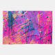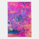 This colourful design features a bright summer sunset sky inspired palette in shades of hot pink, bright purple, marigold yellow-orange and deep sapphire blue paint splatters.