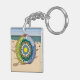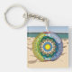 This beach themed mandala features layers of seashells, sailboats, sand, sun, sea, and palm trees inside of a transparent beach ball to bring to mind the fun that comes with summer.