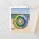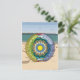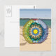 This beach themed mandala features layers of seashells, sailboats, sand, sun, sea, and palm trees inside of a transparent beach ball sitting on a sandy beach with the ocean visible on the horizon to bring to mind the fun that comes with summer.