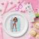 Trendy summer African American surfer beach girl birthday party paper plates.