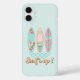 Surfboards featuring tropical island designs over Surf's up! text. Customize the background colour.