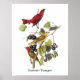 This beautiful print by John James Audubon is of a trio of Summer Tanagers perched on a tree branch with small dark fruits. The males are a bright red white the females as usual have much duller colouring.