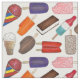 Fabric features an array of classic summertime treats, just like the kinds the ice cream man sells! Treats include fruit popsicles, twin pops, chocolate and strawberry eclair popsicles, sno cones, ice cream cones, creamsicles, fudgesicles, rocket pops, and ice cream sandwiches. Created from a series of original marker illustrations, and ideal for all kinds of sewing and crafting.