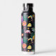 Here's a fun water bottle that can take you from home chores to the beach or anywhere else in style! It features a pattern of tropical images, including lemons and grapefruit slices, palm leaves, frosty ice cream bars, a toucan bird, and, of course, a pink flamingo. The pattern is placed on a dramatic black background.