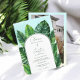 Celebrate your special day with this tropical greenery wedding invitation, featuring lush green palm and monstera leaves against a soft blue ocean and tropical beach background. Add your couple photo at the back. The elegant script and modern layout make it perfect for a summer beach wedding, destination ceremony, or tropical garden celebration. A fresh and stylish way to invite guests to your big day!