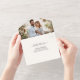 These "Summer Tropical Palm Leaves Wedding Photo All in One Invitations" are designed with an easy to tear off perforated RSVP postcard. Just simply fold each card into the outlined shape, and then seal and send - no envelope needed for shipping.