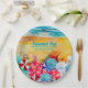 Waves on a sandy beach, a surfer and sunbathers under colourful umbrellas, these personalized paper plates are a fun addition to your summer decor, family reunion, vacation or any occasion.