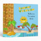 Add your family vacation photos and personalized text to this whimsical, fun, three ring photo binder with tropical beach, palm trees and cute sun wearing sunglasses.image courtesy of freepik.