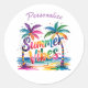 Summer Vibes Colourful Palm Trees Ocean Personaliz Classic Round Sticker