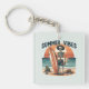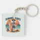 Summer Vibes Skeleton Surfer Sunset Beach Design Keychain
