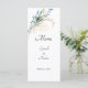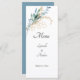This Summer Watercolor Wedding Menu Card is designed with soft eucalyptus branches in shades of blue-green with golden highlights. The Front text includes: the Bride and Groom's First Names and Wedding Date. The reverse text includes: The Wedding Reception Menu - Appetizer, Entre and Dessert Selections. To personalize, simply insert your menu details into our template, replacing the sample text. Be sure to view the entire Summer Watercolor Wedding Collection for matching cards and Reception Stationery.