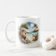 Summer vibes mug featuring a watercolor Lion on the beach. Customizable.