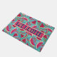 Bright slices of colourful watermelon tumble in a summery watercolor greens. Welcome is centred and your custom name is overlaid in trendy script. Add this cheerful mat to greet guests or customize for a housewarming gift. I created this design to evoke the best of the happy season.