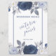 Summer Wedding Bright Blue Floral Reception Menu designed with watercolor flowers in shades of blue and soft grey, on a white background with blue border. The front text includes: Wedding Menu, The Bride and Groom's Names and Wedding Date. The reverse side is a matching floral design on a blue background with border. The reverse text includes: Appetizer, Entre and Dessert Selections. To personalize, simply insert your menu details into our easy, step-by-step template, replacing the sample text. Be sure to view the complete Summer Wedding Bright Blue Floral Collection for matching cards and accessories.