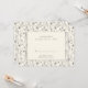 This elegant RSVP card features a delicate floral border with hand-drawn botanical elements, creating a charming, nature-inspired look. The simple yet sophisticated design, with black illustrations on a cream background, perfectly complements weddings with a rustic, garden, or vintage theme. The minimalist text in the centre allows guests to easily respond with “joyfully accepts” or “regretfully declines.” This card is perfect for couples looking to add a touch of timeless elegance and floral romance to their wedding stationery suite.