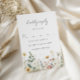 This design features a watercolor border of wildflowers in shades of gold, red, blue, and green. Perfect for spring and summer weddings.