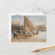 A postcard with the fine art watercolor painting by the American artist Winslow Homer (1836-1910), Summertime (1880). A summer landscape of a group of boys mooring a sailboat on a sandy beach.
