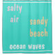 Turquoise blue green solid background. Salty air, Sandy beach, Ocean waves typography in pastel pink, tan and white typography. White geometric stripes. Designs by TamiraZDesigns.