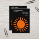 A business card template with a Sun symbol. Company name, business type and address on the front with name, job title, telephony, web and email addresses on the back, with the same layout.