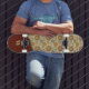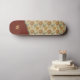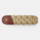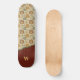 This cool skateboard features a vintage celestial style sunshine pattern, with faces in the suns and winding vines of green. The colour scheme includes the fall colours of deep gold, burgundy, maroon, and deep green. One monogram initial appears in gold against a "torn" look colorblock of burgundy. The unique golden colours and retro boho look gives this skateboard a style that's as unique as yours.
