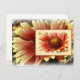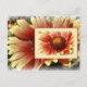 Send this postcard with a close up photograph of a single beautiful yellow and orange blooming Gaillardia (Blanket Flower) drenched in sunshine to brighten someone's day. The framed single flower is off-set to the right and stands out from the outer textured flower border. Click "Customize it!" to add text such as a name, verse or quote and select a font style, size and colour you like to the front and back. Postcards make great thank you notes, event announcements, new address and more. Even use it for an invitation and save on the postage costs. The photograph is ©Patricia AZ Phillips.