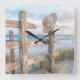 Sun Hat On a Beach Fence Square Wall Clock