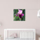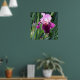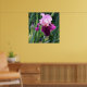 Pretty sunkissed Pink Iris flower in full bloom and flower buds in the background with long green stems and leaves. Beautiful floral poster for home or office. Original Photography © 2009 TamiraZDesigns.