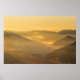 Morning photograph of a stunning sunrise with sun light shining on morning fog in the valley.