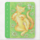 A happy, yellow tabby cat rolling around on the grass in the sunshine. Mousepad with a yellow, orange, green, white and blue customizable design for you to personalise with your own text, pictures and ideas. An original coloured pencil drawing by Jess Perry.