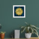 This beautiful art print features a real gold foil sun mandala illustration on a dark blue background. Perfect for a yoga studio or meditation space.