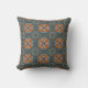 Sun Medallion Pattern in Orange and Slate Throw Pillow