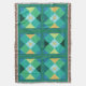 Sun motif in green and blue patchwork squares throw blanket