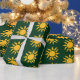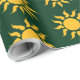 Wrapping paper featuring golden sun on dark green background. Suitable for Christmas, birthdays, and other special occasions.