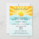 Sun Rays and Clouds New Beginning Graduation Party. Features a bright sun with white sun rays on a gold backgroud, is rising out of the sky with layers of blue, light blue and white clouds below. A modern sunrise design. Symbolizes a happy day, celebration, and a new beginning which is perfect for any new graduate. Just fill in your information as needed. An extra line is provided for any info.