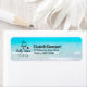 Address labels with an image of a tropical beach with crystal clear turquoise waters. Text says Sun Sand and Salty Kisses.
