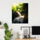 Landscape photograph of a magical scenery with sun shining on a waterfall creating a stunning lighting.