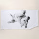 This playful dog sketch sprawls boldly across a towel, blending humour with leisure. A perfect piece for carefree summer days.