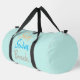 Minimalist duffle bag with the text sun, swim, beach in pastel colours on a baby blue backdrop creating a trendy beach theme accessory for beach party gift favour or just for a fun day at the beach. Can be customized to include your own text or logo.