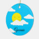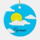 Sun with Puffy Clouds: Turquoise Ceramic Ornament