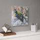 Add some character to a room with this custom 10.75 square inch acrylic wall clock. This clock face is adorned with a photograph of a colourful collared lizard (Crotaphytus collaris) straddling a rock in the sun.