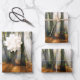 Sunbeams in a misty beech tree forest in autumn - wrapping paper sheet