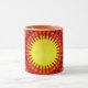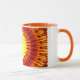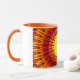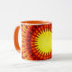 An abstract fractal image takes on the feel of a blazing yellow sun on this bright yellow and orange mug. A perfect wake-up for that first cup of coffee of the morning!