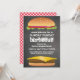 Colorful Sunday funday cheeseburger BBQ invitation with a red gingham picnic check on the back. I purchased this sample in the matte finish paper for a more chalkboard look. Excellent printing as usual. All the text can be customized.