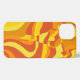 This iPhone case features a hand-drawn abstract wave design in vibrant orange and yellow tones.