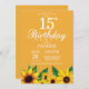Sunflower 15th Birthday Invitation. Floral Flowers and Yellow Background. Country Vintage Retro. Kids Girl Birthday. 12th 13th 15th 16th 18th 20th 21st 30th 40th 50th 60th 70th 80th 90th 100th, any ages. Printable Digital. For further customization, please click the "Customize it" button and use our design tool to modify this template.