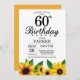 Sunflower 60th Birthday Invitation. Floral Flowers and White Background. Country Vintage Retro. Women Birthday. 12th 13th 15th 16th 18th 20th 21st 30th 40th 50th 60th 70th 80th 90th 100th, any ages. Printable Digital. For further customization, please click the "Customize it" button and use our design tool to modify this template.
