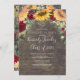 Baby's breath, daisies, burgundy red roses, sunflowers rustic country fall graduation party invitations