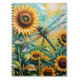 Whimsical Sunflower and Dragonfly Notebook. Sunflower Notebook. Dragonfly Notebook. Bohemian Sunflower and Dragonfly Notebook. Boho Sunflower and Dragonfly Notebook. Customizable Sunflower and Dragon Notebook. Personalized Notebook. Personalized Sunflower and Dragon Notebook.