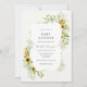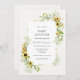 Sunflower-themed baby shower invitation honouring the mommy to be! Design features a frame of watercolor sunflowers and greenery. Personalize with your information or click "Click to customize further" to edit font styles, size and colours.