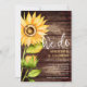 Elegant wedding invitation for your summer wedding! Watercolor sunflowers on the side of the card on a barn wood background. It says "We do" in modern script font. Use this template card for your rustic country theme wedding. Customize this product by adding your own wedding information. Beautiful yellow floral design.